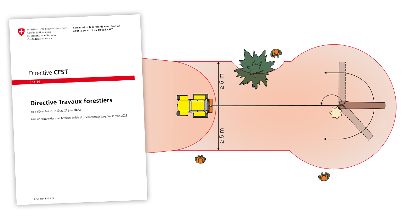 En Suisse, entre 2023 et 2025, la Commission fédérale de coordination pour la sécurité au travail (CFST) a révisé sa directive n° 2134 relative aux travaux forestiers. L’objectif : limiter le nombre d’accidents de travail en forêt. La principale modification apportée à la directive concerne les compétences dont doivent disposer les membres du personnel pour effectuer tout travail forestier présentant des dangers particuliers. D’autres modifications concernent notamment l’utilisation de la tronçonneuse : désormais, celle-ci ne pourra qu’exceptionnellement être utilisée au-dessus des épaules, lors d’abattages d’arbres en terrain escarpé ou lors de travaux sur des arbres sur pied. Plusieurs exigences de sécurité ont été incluses dans des normes spécifiques. La directive stipule par ailleurs que, dorénavant, les treuils, câbles et accessoires de levage utilisés pour le débardage au sol doivent régulièrement faire l’objet d’une inspection par des personnes compétentes en la matière. Pour bien la comprendre, de nouvelles illustrations ont été ajoutées à la directive et d’autres clarifiées. Elles portent notamment sur les zones dangereuses des installations de câbles-grues et de débardage par traction au sol, avec une indication en mètres de ces zones de danger pour le travailleur en forêt. La directive est téléchargeable gratuitement sur le site de la SUVA.